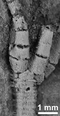 | 형태적 특징 | Ohiocrinus with isotomous arm branching with four to fourteen primibrachials, loosely and clockwise coiled anal sac composed of cylindrical plates and covered with small polygonal plates, relatively short xenomorphic column, and small lichenocrinid-type holdfast |